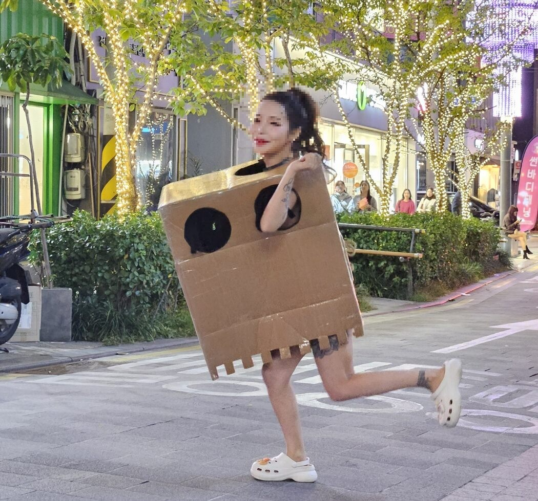 더불어 B씨는 해당 글과 박스를 입은 채 압구정 거리에 있는 여성의 사진을 몇 장 첨부했습니다.